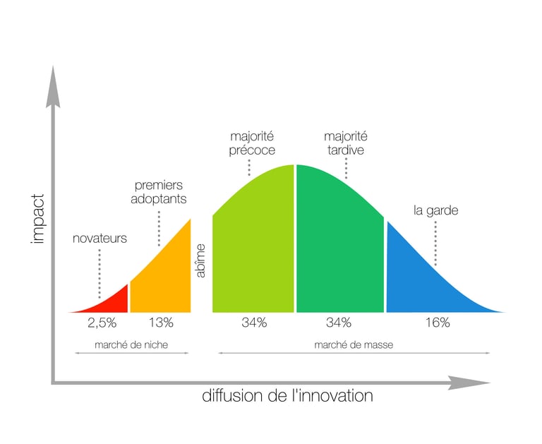 Les innovateurs : une petite fraction de la population, souvent des visionnaires et des pionniers, qui sont ouverts aux nouvelles idées et prêts à prendre des risques.